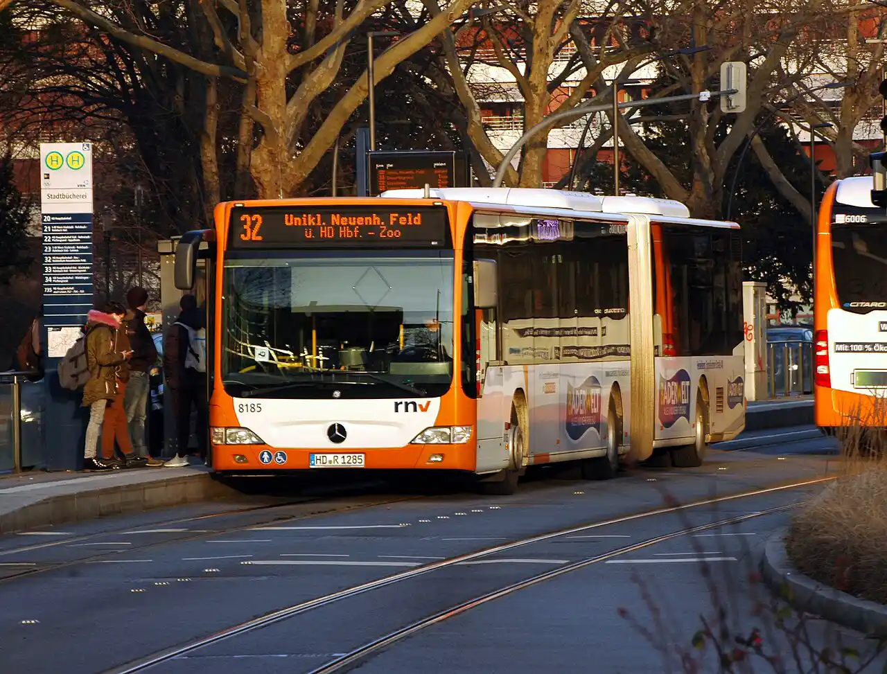 RNV (Rhein-Neckar-Verkehr GmbH) is the company that manages the public transport system in Heidelberg, Mannheim, and Ludwigshafen.